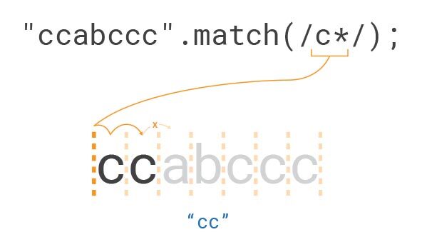 다음 첫 번째 예제는 패턴 내 표현식 c 앞에 ""(빈 문자열)을 일치한 후 "ab"를 검색하기 때문에 일치하는 결과가 없게 됩니다.