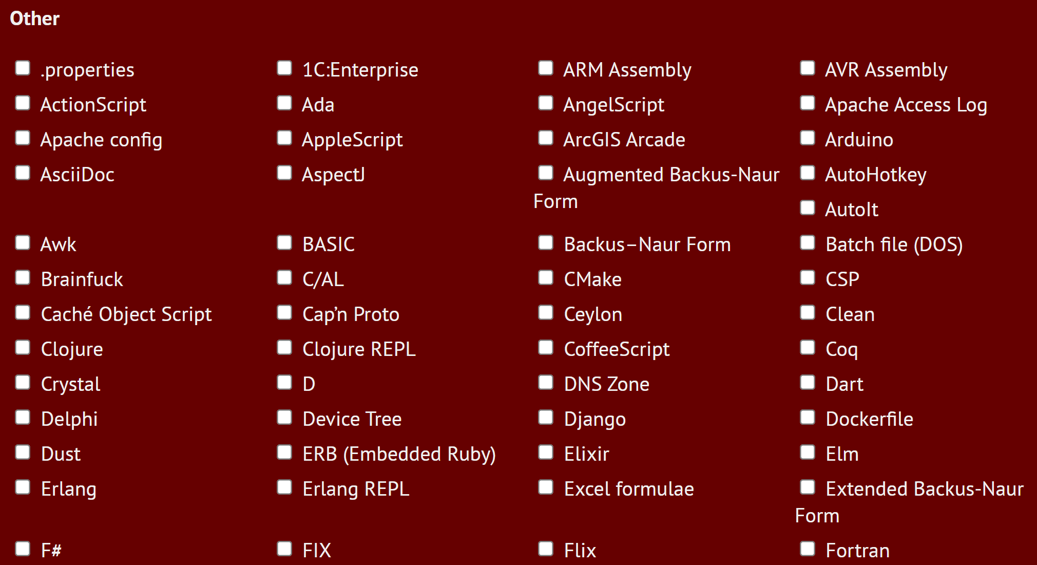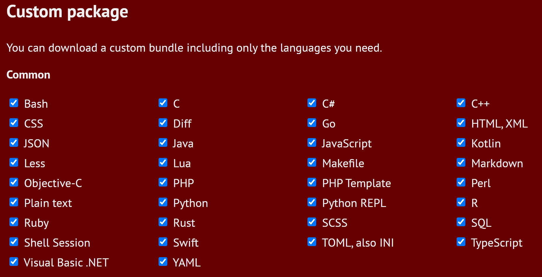 highlight.js는 다양한 언어(개발 랭귀지)와 다양한 스타일을 제공합니다. 기본으로 제공하는 언어와 스타일만 가지고도 충분히 사용이 가능하지만 기본으로 제공하지 않는 언어는 추가를 해야만 적용된 모습을 볼 수 있습니다.