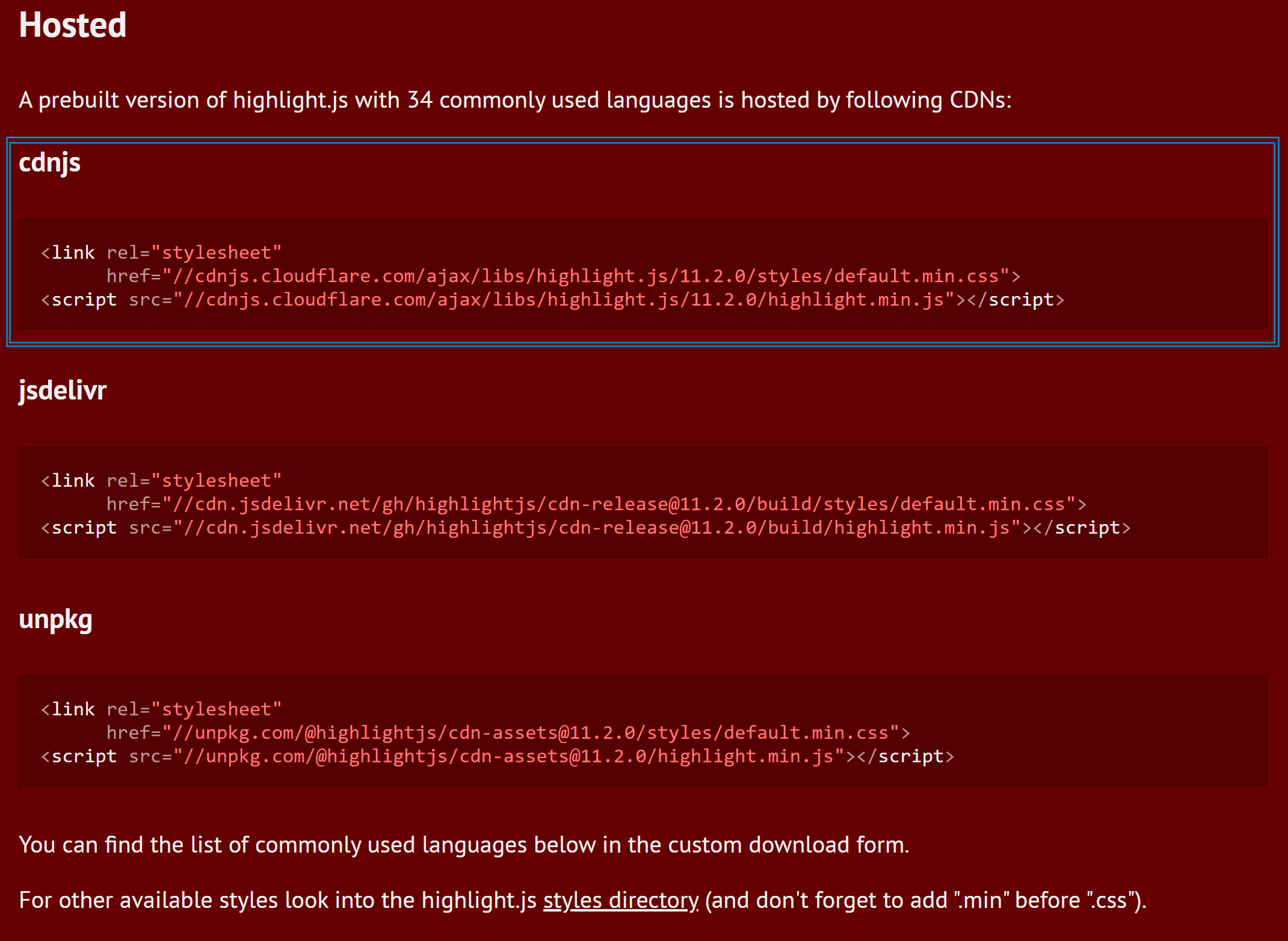 - CDN서비스 : https://cdnjs.com/libraries/highlight.js