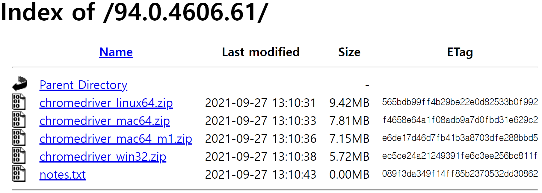 저는 94.0.4606.71 이므로 해당 버전으로 설치를 진행하였습니다.