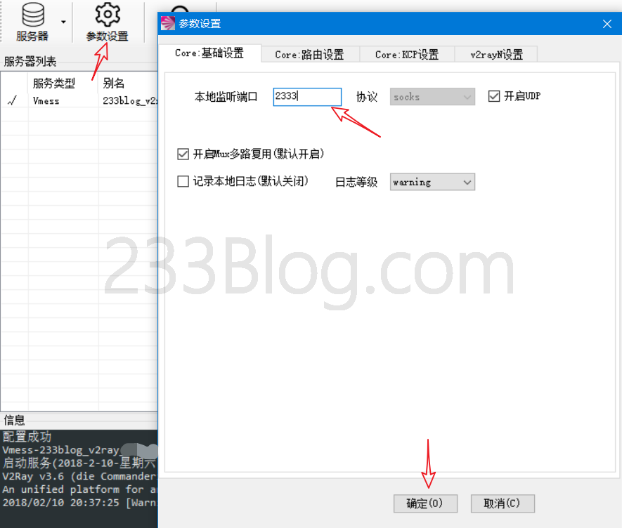 设置本地监听端口,此处我将它设置为 2333